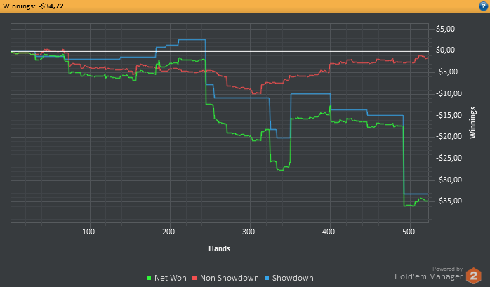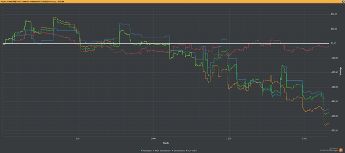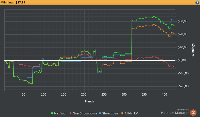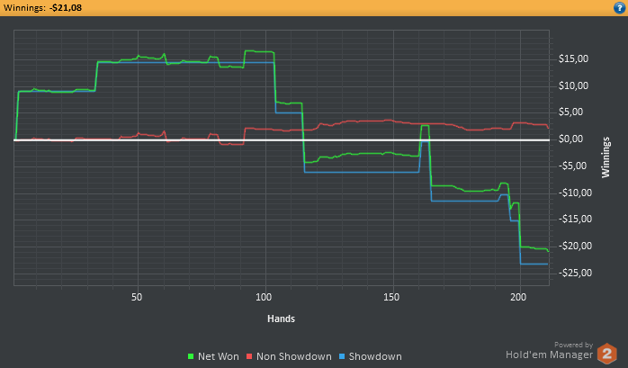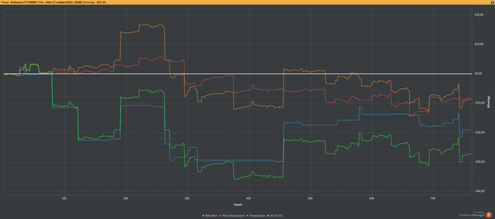 Наконец-то меня настиг апстрик. В последние дни приходилось тяжело. Долго терпел, но сегодня все-таки допустил пару грубых ошибок поначалу. Не смогу выкинуть сет тузов, когда меня била только одна рука 67 на ривере.