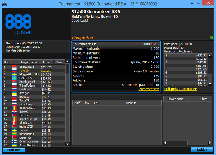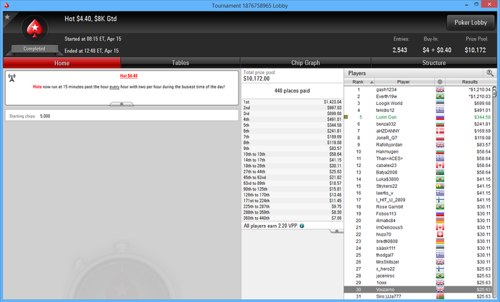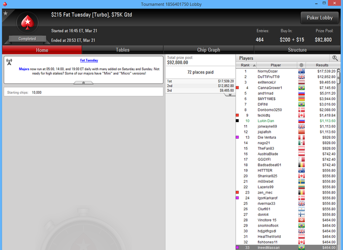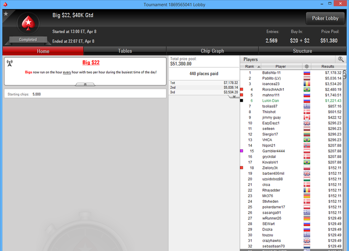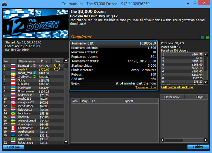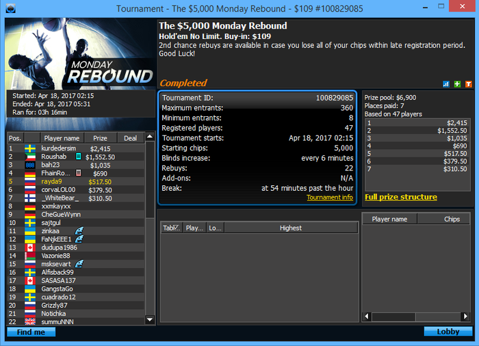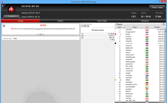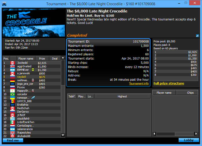 О-обида , но если учитывать что вход в этот турнир я получил залетев в сат за 22 на последних секундах т.к. был оверлей народу мало было и тд то неплохой результат