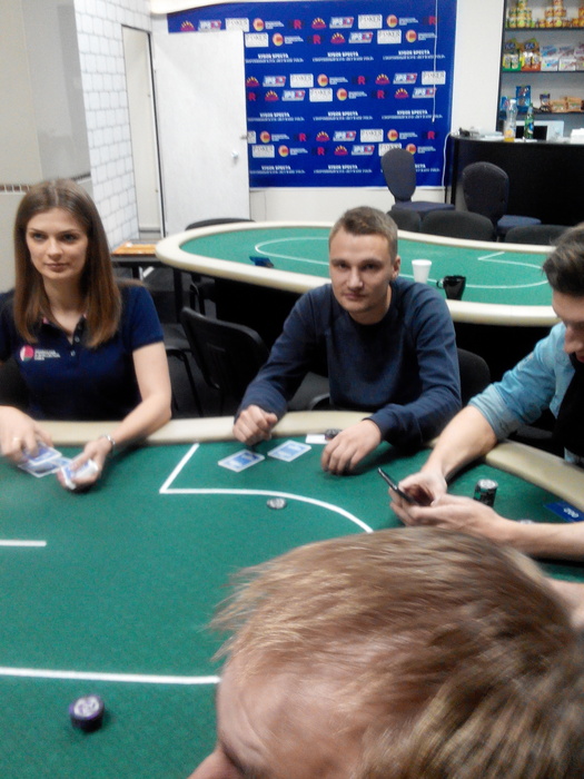 Интересная раздача произошла у нас.Егор Грамаза отркылся с UTG 525, c UTG+1 Артем Панасюк 3 bet 1400, Mp кто-то колл, с bb Александр(фиш) Волошин заколил 3бет в холодную. Егору этого показалось мало, он сделал 4bet 3425 Артем колл Александр(фиш) Волошин колл.