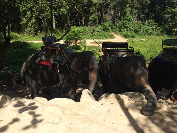 Также, за 50 долларов на человека съездили на экскурсию, которая включала посещение буддийского храма в пещере горы, там же обезьянки, дальше катание на тарзанке, катание на слонах, катание на квадроциклах, потом спуск 5 км по горной реке, ну и в конце какой-то водопад.