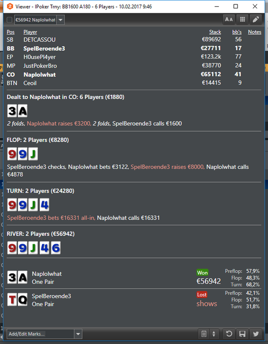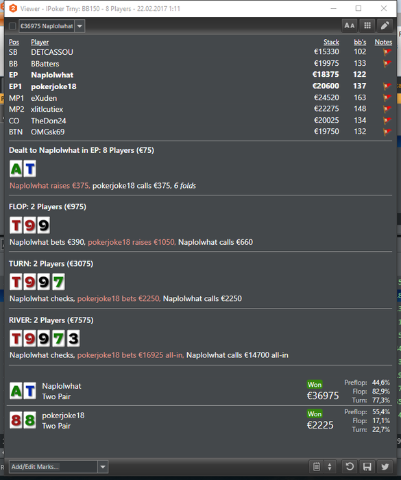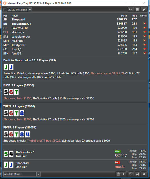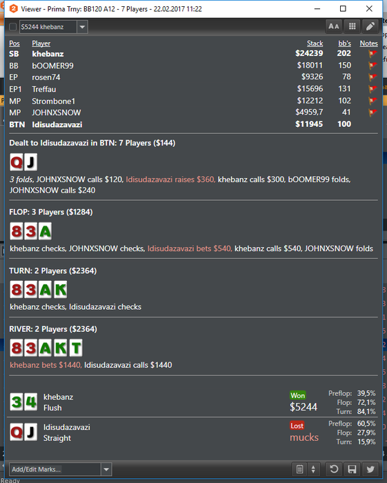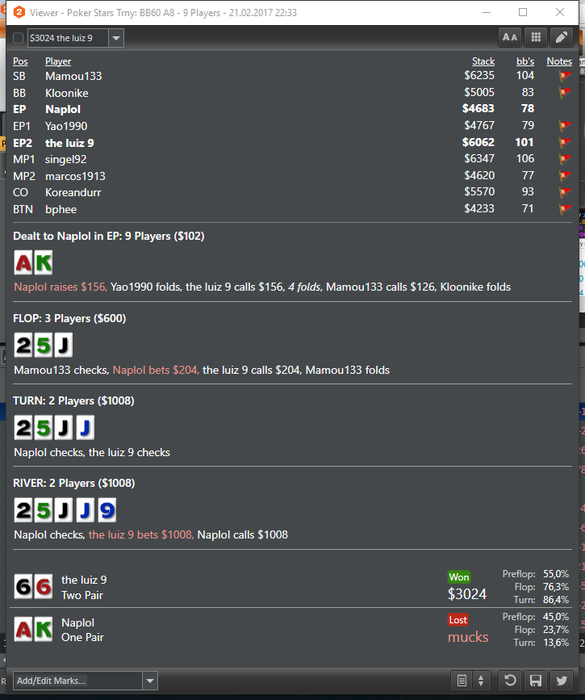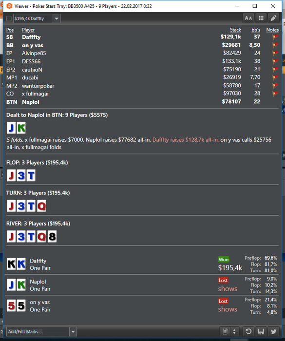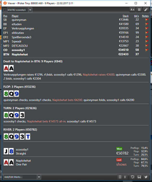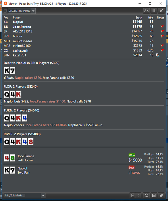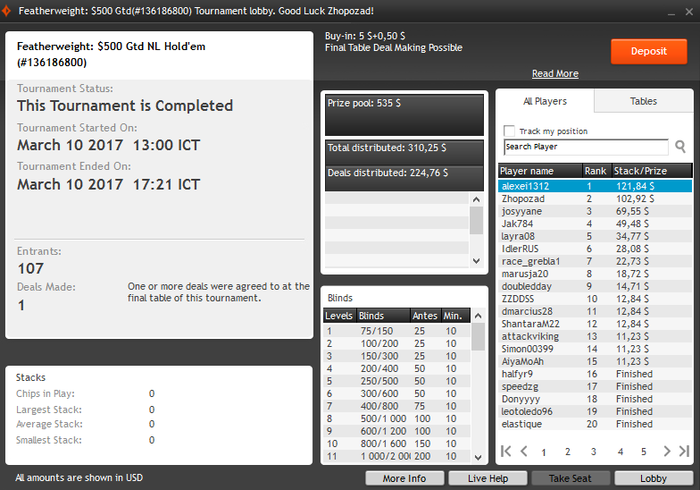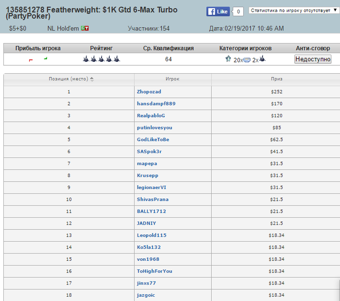Втащил днищенский, нужно отметить, что складывалось знатно, две втащил снизу, одну 50 на 50 в 3-мах, и в хедз-апе флешдро и 2 оверкарты > вторая пара наверно отдавало за анальные ласки на всех остальных столах