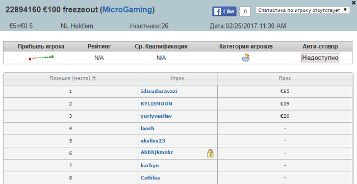 Еще было топ 3 на айпокере в 6-максе за 10, заруинил сам, расклад был такой: фиш с 80бб, у меня 45бб у третьего непонятного 30бб, после 7ого трибета за 5 кругов воткнул в этого непонятного А3о, там колл 99, офк без шансов, потом он же меня еще переехал следующей рукой AJ<KJ.