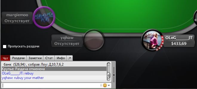 Olegg_JTT, посмотрим как дальше будет идти, но я единственное не лезу на полные столы, так то конечно надо по идеи запрыгивать и стартовать столы , но только играть против фишей и если больше 3-4 человек, а особенно регов если большинство, играсть совсем нет смысла, если есть то не большой, ну во всяком случае мы с Гошей к этому выводу пришли, я вот смотрю на статы по кэш играм, сколько я заношу себе, примерно столько же, ну чуть меньше, я заношу покерстарсу, ну правда они возвращают часть, но все же, чем выше лимит тем конечно комиссия меньше, но там и банкрол надо побольше, а его я скопить пока не могу, выводить приходится постоянно, ну как говорится всему свое время, уровень только растет, народу бы по больше прыгало в HU и уже не плохо будет)))