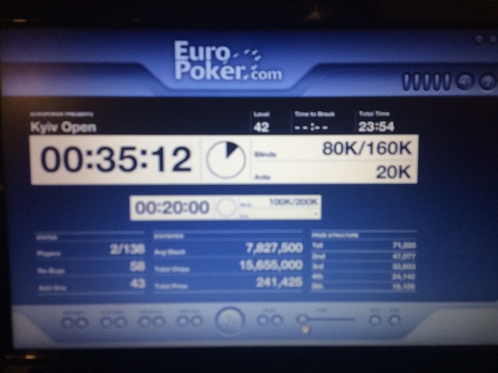 Очень давно не играли в оффлайне в Киеве. И вот решили съездит на данную серию. Что можно сказать? Все прошло на уровне "харьковских" серий WSF. А это определенный "знак качества". В тех непростых условиях в Украине (для покера), организаторы создают максимально комфортные условия для участников. Спасибо им за это. Отдельного упоминания заслуживает турнирный менеджмент. Спорные ситуации если и были, то решались быстро и согласно правил проведения покерных турниров. Все прошло в приятной "игровой" атмосфере. Единственное пожелания организаторам: побольше проводить таких серий. И как итог: