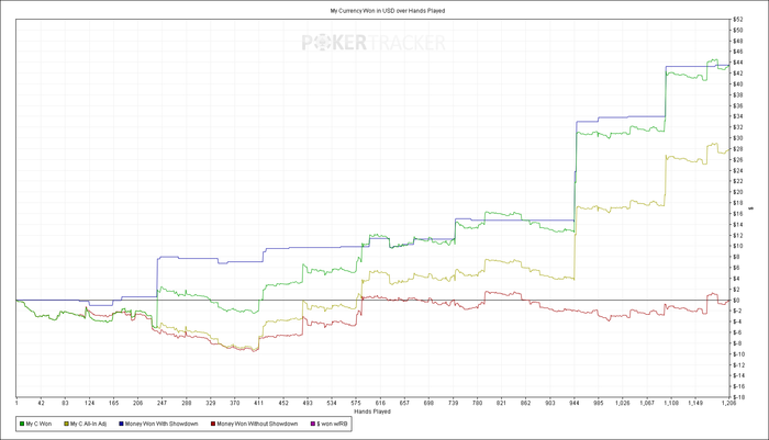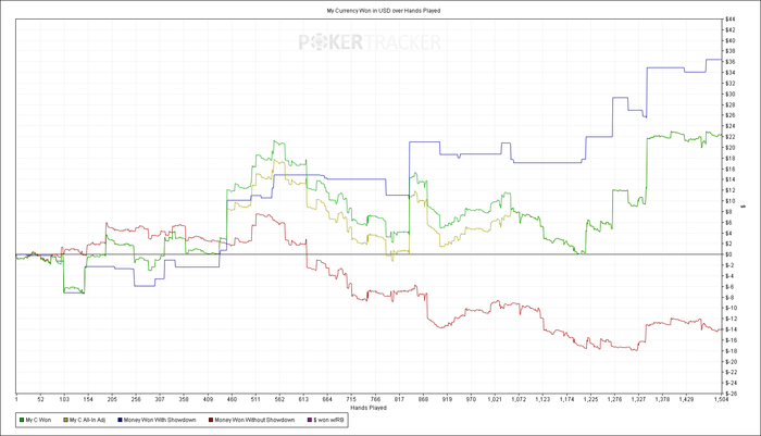 За рабочую неделю наиграл всего 1,2+1,5+1,5+1,5=5.7К рук. А вообще планировал до тренировки накатать хотя бы 10К, чтобы было что разобрать по игре. Но чертов вискарь планы немного порушил.