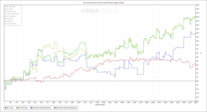 Сегодня после того как сел утром покатать зум на нл2 и чуток минусанул открыл нл5 на задание,вроде нормально пошло но дали 20с,даже на сбет флопа не хватает:))) Хотел еще открыть нл10 но бра жалко,сдержался в кои то веки просто сессия была плюсовой,минусанул бы и полез полюбому отмазывать:((( Малехо взгрустнул и закрыл лимиты,заново все только играть надо больше.С дистанцией 50к в месяц и кеш аутами мне с нл2 никогда не вылезти,еще переработал систему стоплоссов,теперь стоп сессии 7-8би,никаких 10-20би начинаю играть неадекватно.Сделал +10 за счет лимита выше пойду фильм смотреть:)))