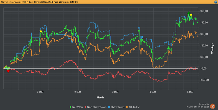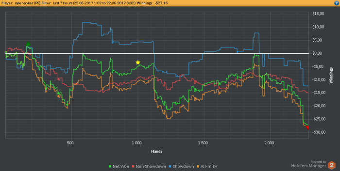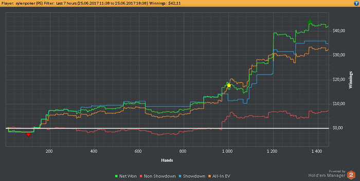 Ошибок примерно на 15$, причем всегда понимал против какой руки играю, но колил, колил и колил из за усталости. Даже с этим пока все хорошо складывается 12к рук +60$ с того момента как перешел на старзы.