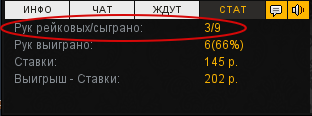 Во вкладке "статистика" за игровым столом отображается количество раздач , я не очень хорошо помню что именно это отображает , но однозначно ориентироваться мы будем по этому показателю. Если 2 круга розыгрыша он считает как 2 раздачи , тогда играем 100 раздач.