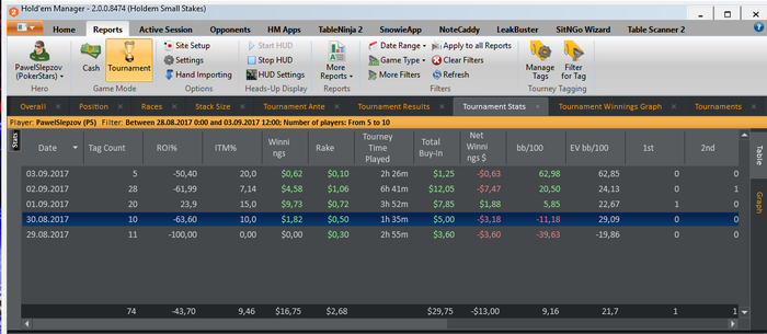 Эту неделю играл по 6 турниров в загрузке, в место 10 обычных. Что не много повысило мой винрейт. Немного лучше стал анализировать ситуации и показатели EV стали выше чем на предыдущих неделях. Но пока диспа все равно немного унижает)))) Одна сессии на недели, в среду, была чисто снг. В субботу и все мтт+снг и вчера тоже погрузил мтт.