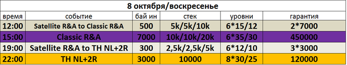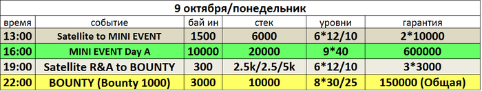 Напомню 10 октября Day B турнира Mini Main по 10.000 Гарантия 600.000 -9 игровых уровней по 40 мин -стартовый стек 20.000 -поздняя регистрация и возможность ReEntry в течении 9 уровней