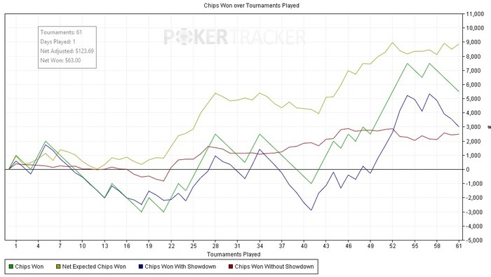 Но еще одна проблема - если начало сессии в хороший плюс (а теперь трекер починился, и все вижу правильно...лучше б не видел), то дальше отбивается желание играть...как с этим бороться? Не смотреть в трекер было бы оптимально, но я туда тыкаю чуть ли не каждые 2-4 турнира...нужно попробовать отучиться.