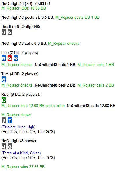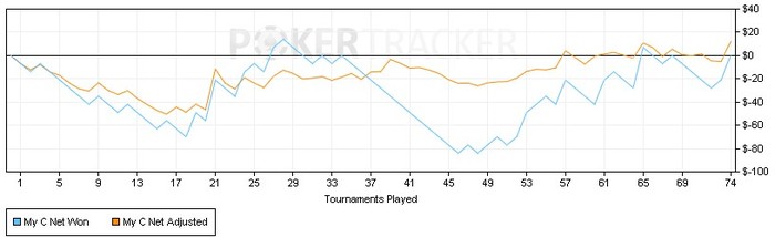 И вот если я с такой фиш-эксплойтной, но не регоустойчивой игрой перейду на 15ки, то, я думаю, мои 65-75 фишек превратятся чуть ли не в ноль... или нет... пока не начнешь, трудно понять, но в любом случае еще минимум 2К на 7ках и куча теории меня ждут)