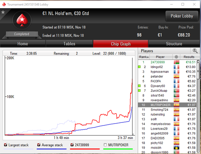 VitalyKhd @ 19.9.2018 Ноябрь/Декабрь Дорабатываю год в режиме AvBI 2,5 Цель: 1. 700 турниров 2. БР к выходу нужен $550