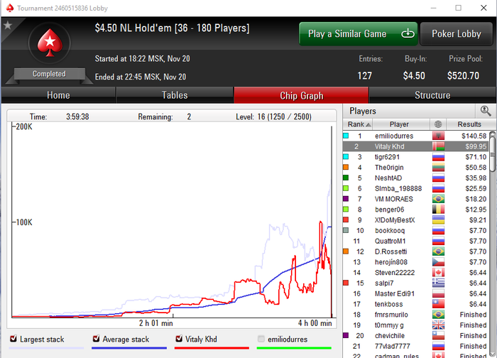 Столкнулся с небольшим курьезом. Вынужден корректировать свои цели. Курьез заключается в трех стриках за две недели по 40bb. Из-за этого делаю акцент на качество игры, а не на количество.