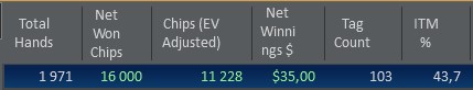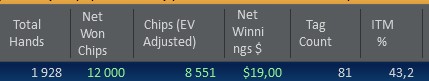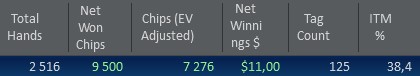 Турниров мало, потому что ещё не до конца вылечился :с Поэтому хорошо, что по деньгам так закончил. Да и по фишкам неплохо.