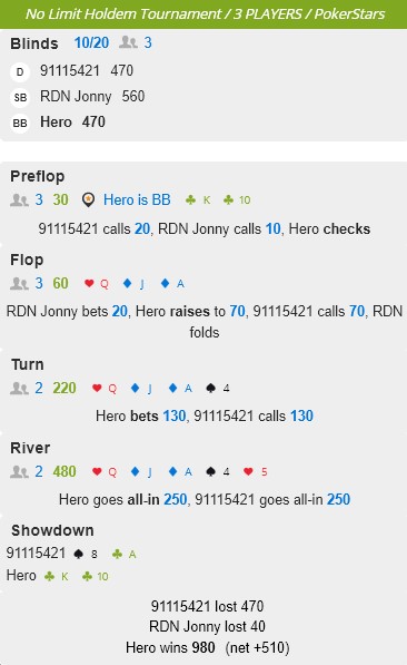 2) У товарища на МБ тонны слабых и неплохих , поэтому было принято решение разыграть натс понастойчивее. Тёрн-ривер бланки очень помогли. Сайз тёрна специально покрупнее, чтобы замазывал на колл ривера. Плюс, всегда могу пойти так исполнять с мисснутым ФД типа , или .