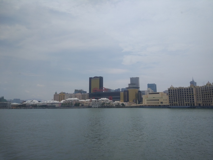 хотелось окунуться в тру интернационал-капитализм и отправится хотя бы на день в один из самых небоскрёбных городов мира: Гонконг. Такой марш бросок начался с быстрого парома из порта Макао Во время недолгого плавания открылся вид на один из пунктов Маршрута( остров Лантау) А меньше чем через час и на те самые каменные джунгли Гонконга На выходе из пирса прибытия(а их там полно, порт огромный) наблюдалась какая-то суперактивная движуха журналистов, но прождав в любопытстве полчаса и так никого не увидев, было решено продолжить маршрут дальше. А может это дольщики ждали доехавшего в Макао хайролера какого-нибудь? И вот долгий путь до другого пирса, через те самые переходы с видами на небоскрёбы Чтобы уплыть на остров Лантау, но я так устал уже выдавать себя за трвлблогера, поэтому ждём следующего поста