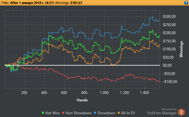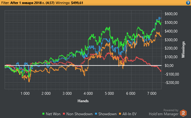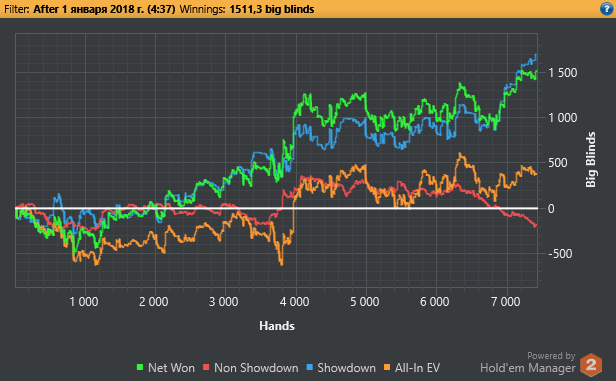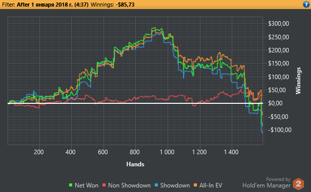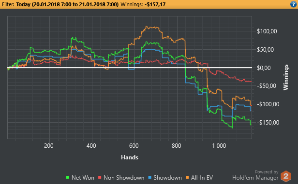 Ужасный день, ужасная игра, ужасный ран и всё что только можно, кроме концовки. Сегодня за 4.8к рук слил по красной больше чем за предыдущие 37к рук. Из выводов - временно отключаю нл50 до восстановления моего нормального состояния, а завтра продолжаю работу над теорией.
