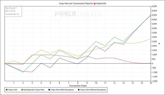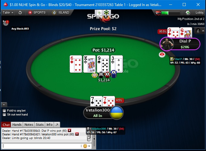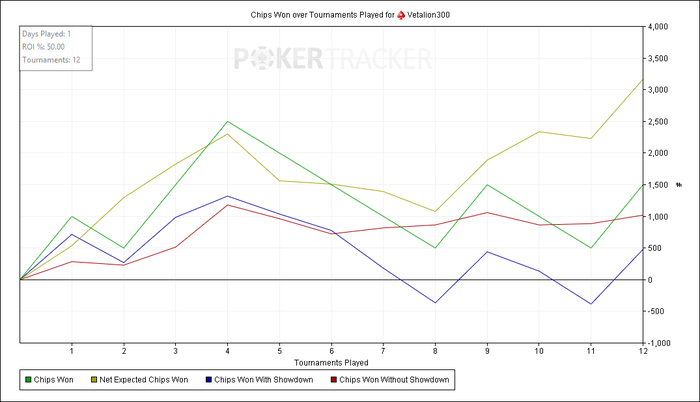 Так как время поджимает, буду краток. Сначала система даже дала выиграть, но потом опомнилась (во имя экологии покера) и начала раздавать подставы и подставляла под доминацию. Но все равно сыграл в "+", как раз выполнив задание. Дали как и полагается 0,5$. Пока играю в один стол и выполняю задания. Много теоретической работы а также офлайн нагружает, так что взял паузу с тренировками на 7-10 дней (но остаюсь на связи и готов прислушиваться к советам).