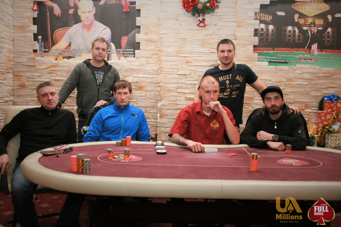 Доброй ночи. Сегодня прошел второй турнир Full House Christmas Cup. Приняли участие 61 человек. Призовой фонд турнира составил 50 000. Поздравляем победителей: 8) Оганесян Армен 1400 7) Аллахвердов Станислав 1850 6) Груздо Эдуард 2500 5) Марио Дзангоне 3500 Остальные четверо решили разделить остаток поровну по 10000. Лубяный Сергей, Головань Кирилл, Соколов Игорь, cherrylow)))