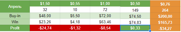 Результат, конечно, хуже чем ожидал. Красивая общая сумма баинов =) Пока спустился на STT за 0.5 и ноки-турбоноки за 1. За 0,55 это были МТТ билдер и хот на выстрел. Понял, что в 18макс за 1.5, очень тяжело за финальным столом, не понимаю, прям груз какой-то давит, всего боишься, поэтому не будут там пока играть. В одностоловых полегче, повеселее, так что, будем работать дальше.