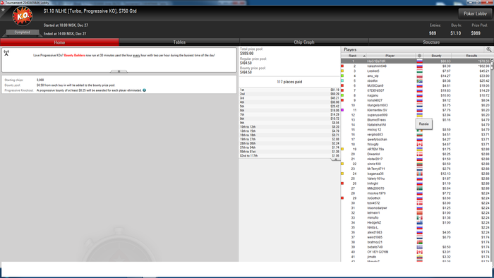 Здорова Мишаня, дела в общем неплохо идут. Сейчас марафоню до НГ микромтт и полторуньки турбо на 45, цель марафона поставил себе отбить минус по шарку ,до начала марафона было -130$. В мтт дела норм частенько в итм захожу, а в полторуньках стопорюсь, сегодня разменял вторую сотню дистанции на них. По первой сотне результат 13баксов/на сотню. По сути топчусь на месте в них. На предфиналку часто захожу, но в них не могу выиграть практически ни одного коинфлипа и отлетаю. Да и рожи одни и те же там, все время в предфиналке по 4-5 регов этого лимита сидят со мной за столом.