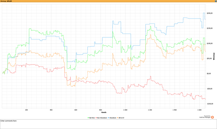 Сегодня напал даунстрик и день закончил в 0. Игру оценил бы на 4 из 5, все таки тяжело сохранять хладнокровие, когда столько неприятных раздач сдают. Под конец собрался и, как мне кажется, смог вырулить минусовую сессию хотя бы 0.
