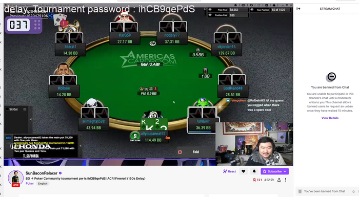 Уверен, что есть скрипт для посадки под нужного игрока. Одни и те же ники попадают за стол к стримеру. Причем точно в яблочко, когда только одно место за столом свободно из девяти. А в лобби есть столы, за которыми по 5-7 игроков. Да еще с первой же реги залетают, без реентри.