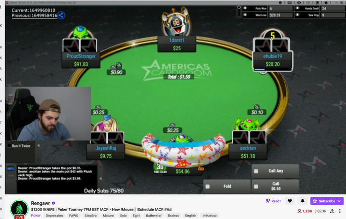 Проснулся) В русскоговорящем сегмента телеграмма давно уже циркулирует список из мин. 10 ников, которые постоянно попадают за столы к стримерам.