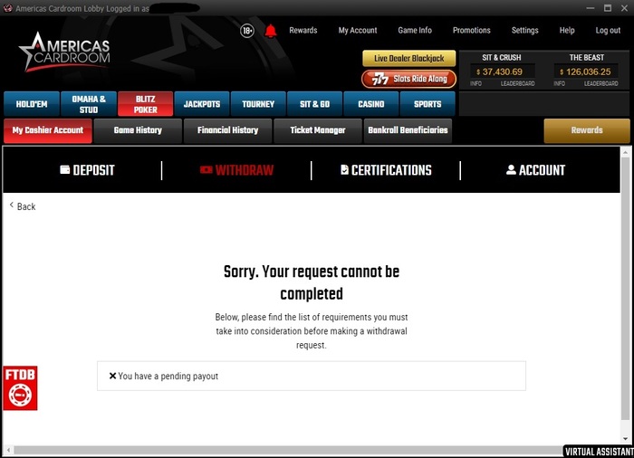 Тема на 2+2 https://forumserver.twoplustwo.com/28/discussion-poker-sites/scam-americas-cardroom-tournaments-bug-client-1821630/?highlight=