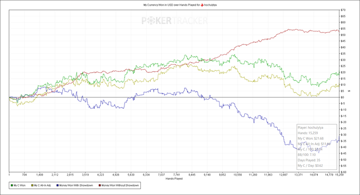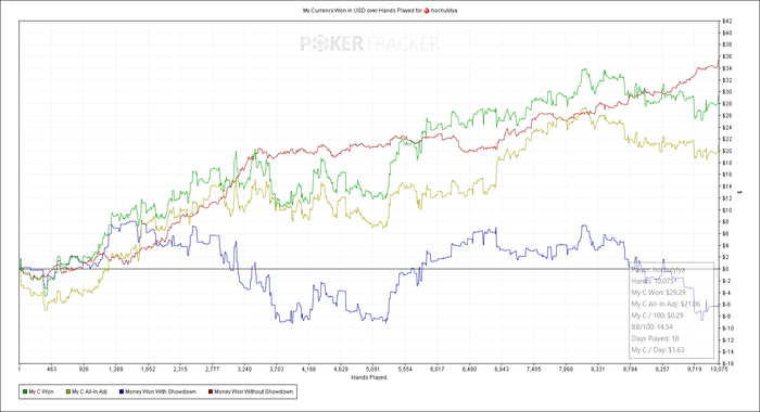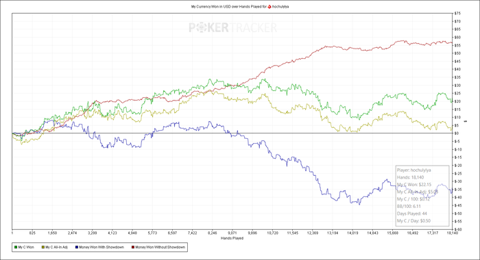 нырнул в базу из моих скромных 8k рук и посмотрел как я сыграл эти злосчастные неплохие руки в 3бет поте без позиции. Оказалось, что таковых рук набралось не очень то и много, всего 43 руки. И вот что я увидел...