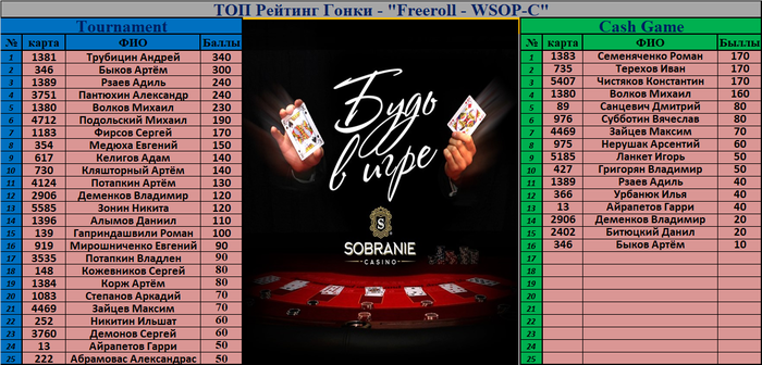 Ну а сегодня в пятницу, ждём всех желающих на Cash Game. Начало мероприятия в 21:30. Так же в казино пройдёт супер игра с призовым фондом 500.000 рублей. Билеты выписывались в турнирах за попадание в топ 3 и за участие в кеш игре в течение недели!