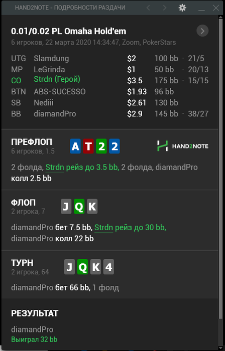 0ri0n, я бы кол жал терн, по фд выкидывал бы на ставку, по спарке бы ставил банк. Выбивая стриты те же. м.б младшие фуллы выкинут. Часто против тебе стрит такой же будет играть, цель не поделить а выбить оппа из банка. Если фд закрылось то пасс на ставку, блефовать бессмысленно