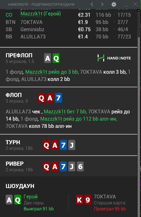 1 Стоило ли колоть такой большой ривер, По терну думал что у него скорее всего ФД так как замечал что игроки с большим впипом их любят, так же не исключал пару но почти любую я бью кроме QK, QA, две пары QJ и сеты. очень сложно ложить диапазон после лимп колла.