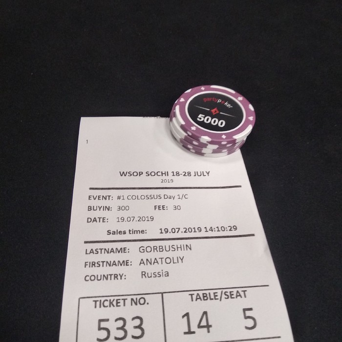 Встал утром 19 июля в свой день рождения ,и поехал на турнир ! Дорога у меня заняла около 3 часов ,от Абхазии до Казино ! Особо не поездишь ,зарегался в турнир на 5 уровне Сolossus с баином 330 $