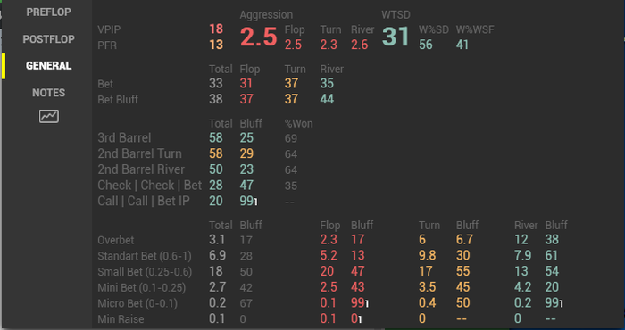 Да и везде пишут агрессия агрессия это плюсовость, нужно быть агрессивным (адекватно имеется ввиду, ставки по сайзингу, все по грамоте как учат в книгах, + учитываешь диапазон опа + статистика) и толку?) Играю достаточно тайтово разыгрывая диапазон не более 20% рук, а то и вовсе меньше в зависимости от позиции. Агрессивностью напугаешь только нита нынче, всех остальных, напугать большой ставкой? Продолженной? Баррель?) Пффф бывают типы, которые по статистике вроде бы тайтов, надеешься что сфолдит, и тут вдруг все колл да колл с рукой хуже твоей, по крайне мере очень широкого диапазона и на ривере ловит стрит, пхахаха блин))) На микролимитах много неадекватных игроков (подниматься выше я не могу, мой БР маленький) которые делают такие вещи не логичные, не предсказуемые, как будто и не знают каких-то все таки стандартов... Эксплуатировать непредсказуемость я не умею, и разбиваюсь об это сам же, даже с руками монстрами теперь играть страшно, очень часты переезды с мизерными шансами - обидно.