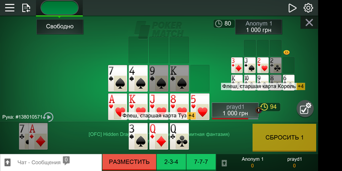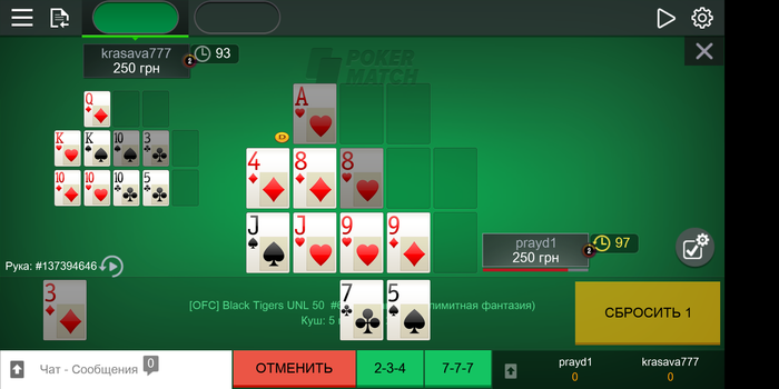 А раз на фанте ставлю фул в бот, в мид 2 пары 8866. Моргает красным... Что не так, думаю... А это две пары 6666))