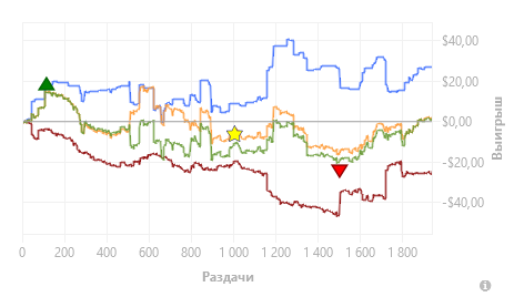 -38,5$, были и другие выставления на других столах, но там почти нечем делиться. С одной стороны, мои доводы вполне логичны, и мне не везло (разве что с AJ я наебланил и трибетпуш с КТо не стоил того), с другой - со стороны это всё похоже на типичные оправдания. После последней раздачи пришлось закрывать сессию и сходить в магазин в целях прогуляться и остыть. По приходе домой я еще не успокоился, но было уже заранее решено поделиться всем этим тут. Пока всё печатал, стало лучше, могу продолжать игровой день, еще 2400 раздач надо отыграть за сегодня. Самая большая проблема таких стриков - это не потеря денег, на дистанции эти 40$ почти ничего не будут значить для меня, тем более в прошлый раз я апнулся на +100$. Проблема в страхе, что это не конец, и я еще сегодня много проиграю.И этот страх явно нерационален, любой человек со стороны может сказать, что я за 3к раздач последние отыграл в +60$ и глобально у меня всё хорошо по результатам