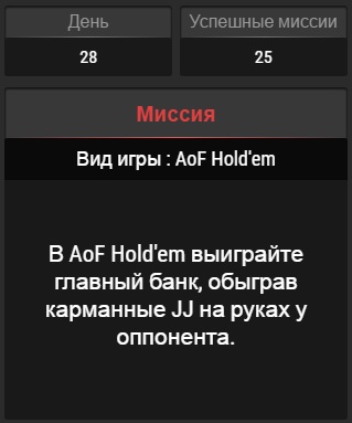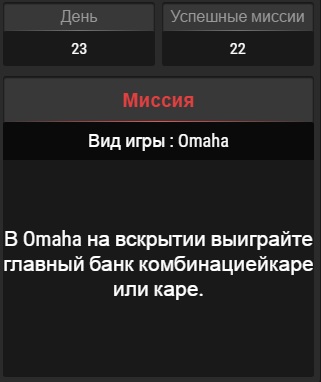 День 24. 23 из 24 заданий выполнено. В одной из первых раздач подфартило и удалось флопнуть стрит-флеш, видимо сегодня нужно было каре собирать)) Кстати стрит-флеш оплатили на стэк, у оппонента оказался одномастный туз, с которым понятно не отскочишь ни на какой экшен. Игроки в омаху еще тупее, чем в холдем, я хоть и играю в омаху хай лоу, но в обычную омаху я гораздо хуже играю, чем даже в холдем, омаха и омаха хай лоу две абсолютно разные игры с разными стратегиями, стартерами и т. д., но даже моих скромных знаний об этой игре хватило понять, что если в холдеме тут люди водят лицом по клавиатуре, то в омахе они водят по клавиатуре задницей, таких неадекватных действий я давно нигде не видел, опять же удалось и выполнить задание, и выиграть денег. На данный момент одно задание уже не выполнено, соответственно нужно достичь отметки в 25 заданий и заканчивать, за 29 заданий никто не заплатит, поэтому оно никому и не нужно) Но я даже если выполню 25 заданий до 30го задания, то я в любом случае заскриню оставшиеся, выложу в одном посте все 30 заданий и дам советы какие выполнять, а какие пропускать, чтобы это было максимально по минимуму затратно по времени и возможным финансовым потерям.