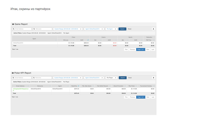 3) Предоставлены официальные скрины с рейком/рб из партнёрки ГТ за отчётный период моей игры от clubOK. Опять же комментариев ни от кого нет, даже от самих представителей этой партнёрки ГТ.