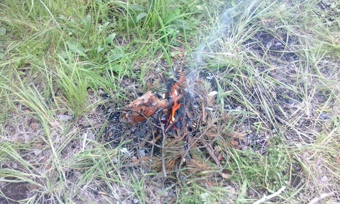 Развел костерок и пожарил сальца: