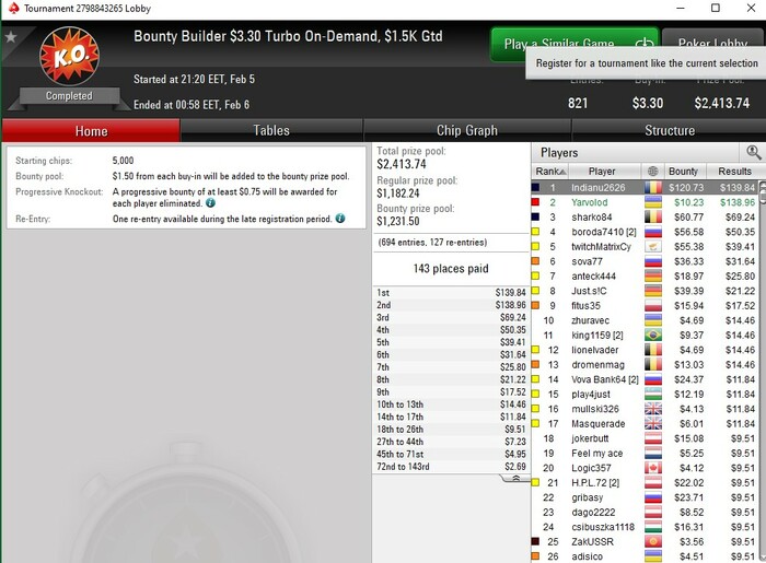 Есть хорошие новости! В покер все еще можно выигрывать :) Особенно в Fusion покер... Но об этом я позже раскажу) Наконец-то у меня на счету рабочий БР: $270. Цели на февраль: * БР $1000 до конца месяця. * Сыграть Sunday Million. * Выиграть крупный турнир (приз от $1000)