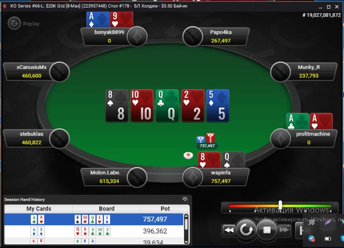 mishavoinn @ 17.9.2019 Начал шотать 25тку, играя 4 стола все проходит очень комфортно, минимум дисперсионных решений. С маржинальными руками стараюсь не воевать с регами - типо J9s, T8s, просто фолжу на сб. Меньше стараюсь блефовать, максимум + EV решений. День прошел неплохо, выиграл немного долляров Позагружал КО турики, повылетал из всех, только в одном удалось отбить БИ) У нас 50бб +-, до ИТМ меньше 200 мест. Раздача: Опп открывается 2бб на УТГ, МП кол, я сквиз 10бб. На флопе я 1/3, он ч.р плоский. На терне кладут даму, ну я такой каеф, и запушил, выбивая все пары 77 - JJ. Он снэп кол, и мне машет ручкой Пробовал отобраться на миллионник за 5.50, где нужно досидеть до 27лвл повышения блинов, 2 entry и все провально. А потом еще нужно сражаться за топ 100 чтобы получить сам билет) Вряд ли буду еще пробовать отобраться на турик этот, к следующей серии подкоплю БР и буду активней катать:). Максимум что попробую - бесплатный сат на 888 к инферно. А сейчас погнал смотреть Челси, Лондон из блу