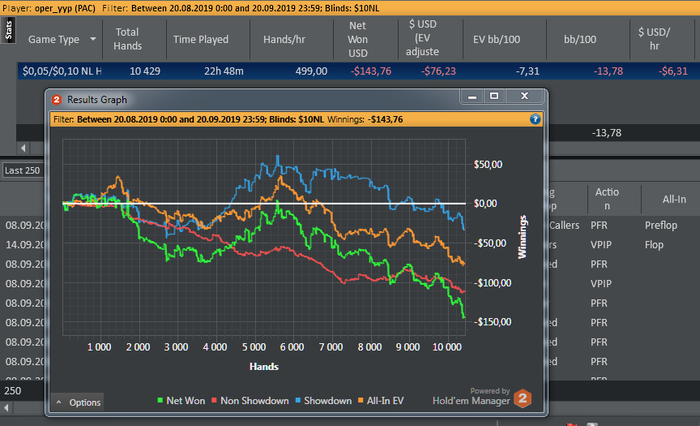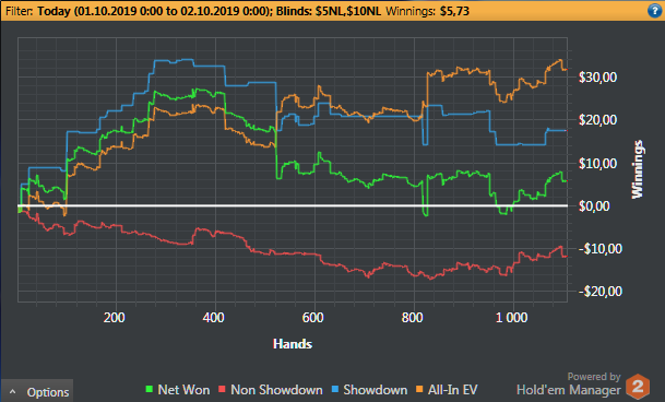 Ну а в целом даже 410$ по EV за месяц на лимитах нл 5-10 считаю не плохим результатом