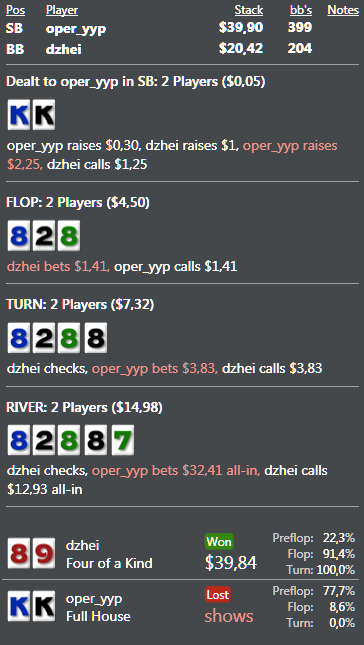 Ну и ривер конечно меня добил в лучших традициях 888 = доехало 9%. Просто ДИЧь fuuuu.gifdestroy.gif Не знаю какие транквилизаторы надо кушать чтобы оставаться спокойным при таких раздачах puzzled.gif