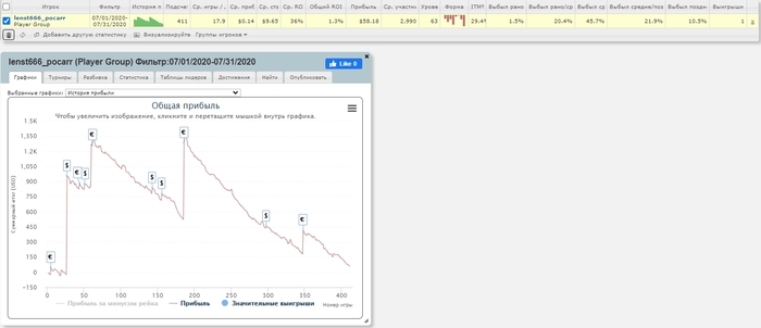 Долго не писал, ибо пока к сожалению или к счастью не очень настроен вести покерный блог. В дальнейшем это возможно изменится. Буду периодически что то писать. А сейчас - закончился год и пора сделать небольшую покерную сводку того, как он для меня прошел: В начале 2020го вступил в фонд Pocarr. К этому решению я подходил очень взвешено и был настроен довольно серьезно. Я дал себе "год" (полтора по контракту) для того что бы дать себе понять гожусь я или нет. Хотел что бы покер стал основным и единственным источником дохода. Решил уделять ему столько времени, сколько потребуется для достижения своей маленькой цели. И вот спустя определенное количество месяцев можно посмотреть на то, что получилось. Удалось уверенно зацепиться за аби 15-20. Путь был не самый простой. Начал с единичек в целом ничего особенного. Просидел там недолго. Думаю в это время за новичком смотрят в фонде, что он делает и т.п. . Почти сразу продвинули вверх и я стал катать исключительно мтт. Без переапа в мае конечно не обошлось, мне тогда повезло доехать в трехдневном колоссусе до топ9. Это дало довольно хороший мотивационный буст и покерную уверенность. Я взял небольшой отдых около пары недель. После этого началась грусть. Не удавалось долгое время нигде доехать и играл в слабый минус. Мейк на пике был чуть меньше 4к. В определенный момент меня постигали мысли о том что дальше уже некуда. Уверенность которую я приобрел начала угасать. Благо что своим упорством и напором под конец года удалось ее вновь приобрести и вынести еще немного денег. Особых целей на 2021й год не ставлю. Если дойду до abi 30 - хорошо, а если до 50 то вообще космос. График и результаты прикрепляю.