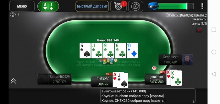 итоги дня:-13бр 151(по тактике 15 туриков все ровно в минус хотя и шел в плюсе)(теперь новая гружу в день от бр 10бб,то есть сейчас максиму я могу в день от 150 грузить на 15 баксов-не зависимо от результата,как потратил 10 бб от бр на турики то больше не гружу)опять же все учусь и пробую новые приемы,также буду отписывать во что сыграл чтоб видели результат на сколько гружу.Теория 60(576) симпл 0 (160).Всем удачи))