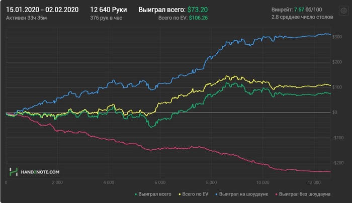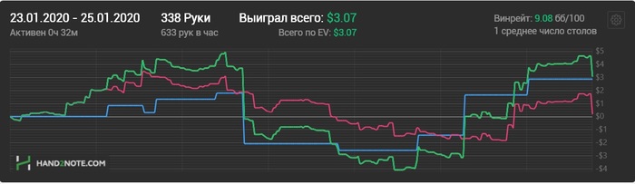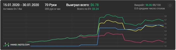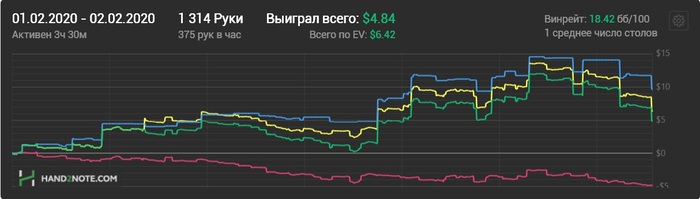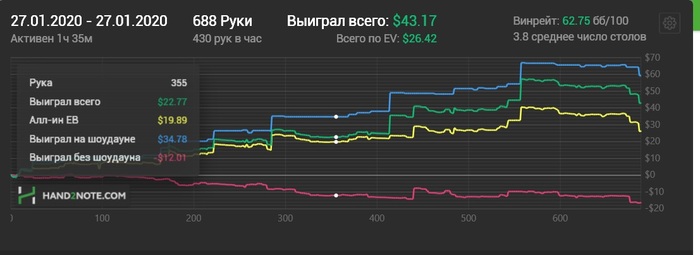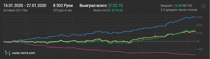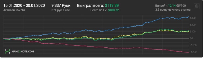 Кстати говоря, мне почему-то удобно играть несколько коротких сессий, в перерывах я обычно перезагружаюсь, и потом по новой за столы. Так легче гораздо. Как следствие, сессии больше 1000 рук для меня довольно редкое явление.