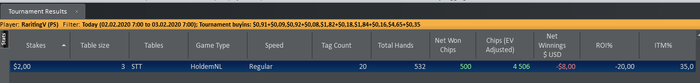 На акционных двойках тоже полная жопа за два дня просаживался до 70 баинов, сейчас минус 40 при чипев плюс 35 фишек за турнир, 175 спинов, спасибо игрокам любителям таким же как и я, любезно помогли немного отмазаться и вывести хотя бы евеху в плюс