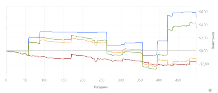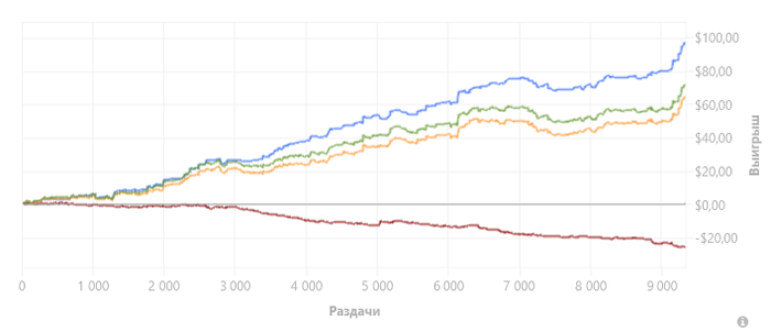 Количество отыгранных рук: 2134 Продолжительность сессии: 5h 45m Профит: $9.15